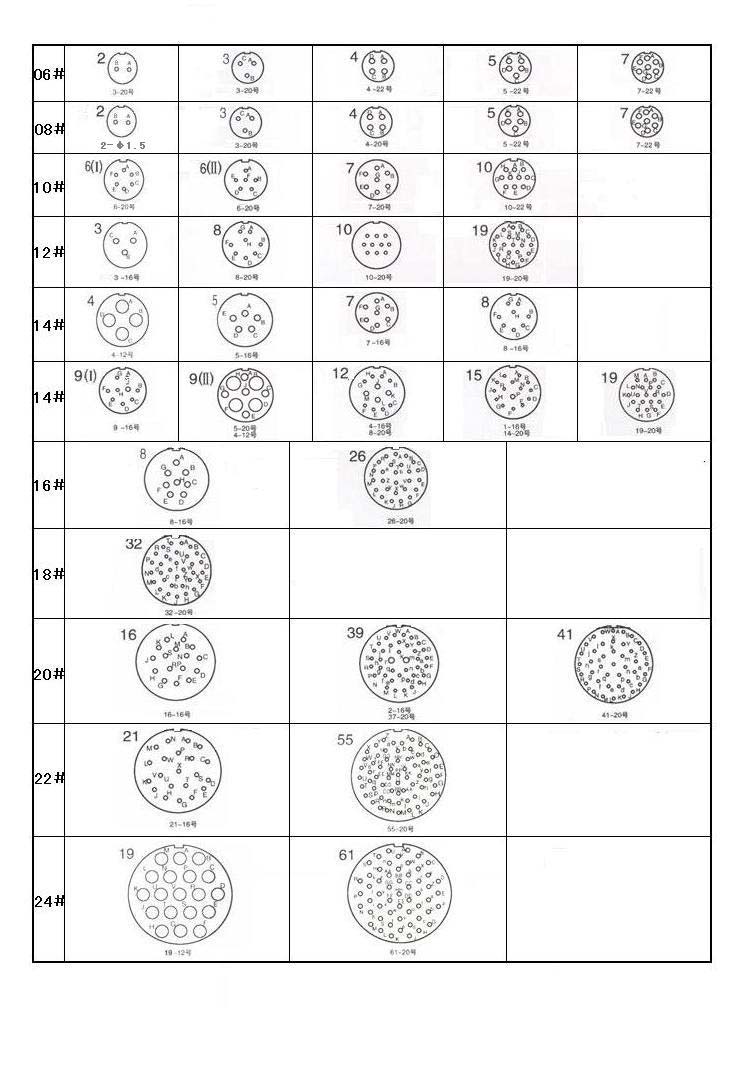 Y50EX系列接點排列(裝針絕緣體插合面視圖)