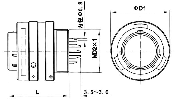 XCF插座(XCF插座帶螺紋和不帶螺紋兩種外形尺寸相同,圖形以帶螺紋為例) ![]()