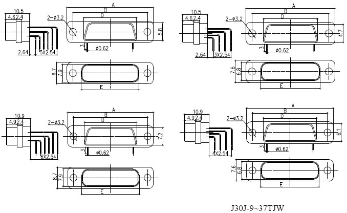 | 接觸件尾端與印制板的連接方式為彎插式,印制板網(wǎng)格尺寸為2.54×2.54。 產(chǎn)品外形尺寸 ![]()