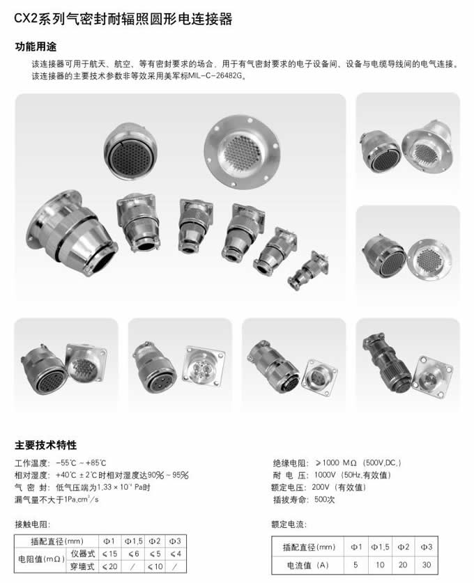 | CX2系列氣密封圓形連接器,主要技術參數非等效采用美軍標MIL-C-26482G。廣泛應用于各種電子儀器、密封容器的子設備與電源之間的電路連接。該系列氣密封連接器的連接方式為螺紋鎖緊連接,使用方便。插座采用玻璃燒結工藝,氣密性好。 密封穿墻電連接器主要用于氣密座艙及其他電氣、無線電設備,需要保持氣密性能穿過墻壁的電連接。 該系列密封連接器目前有七個殼體號,二十九個孔組數,有非密封、密封和密封穿墻等品種。尾部附件有直式壓線式、護線管式、彎式壓線式和屏蔽式四個品種;除以上四種形式的尾部附件外,還設計了 種尾部附件形式,供用戶選用。 ![]() ![]() 更多詳情請咨詢:http://www.svk5.com |