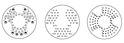 ![]() 接觸件孔位排列(插頭插合面正視圖)