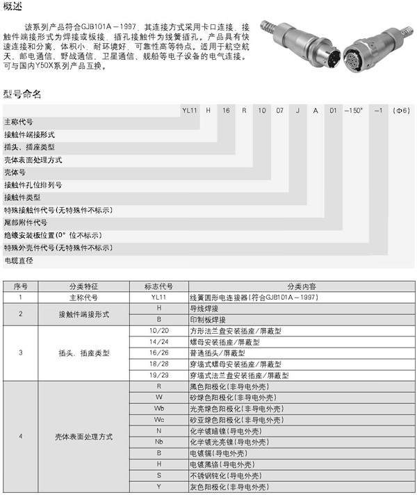 Y11系列電連接器,航空插頭